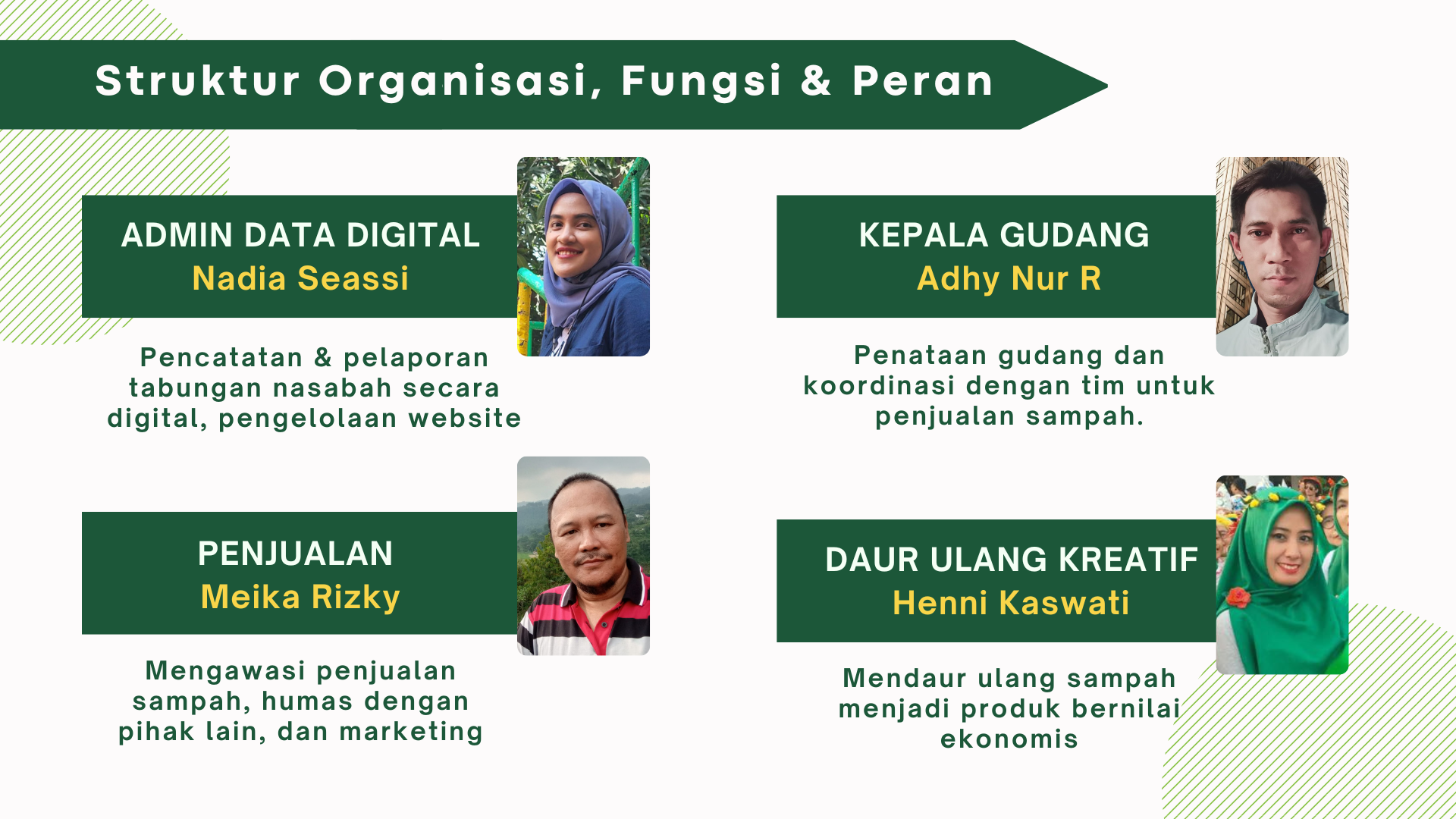 dengan total 230+ nasabah dan 5 orang pengurus yang berkontribusi dalam reduksi sampah sebanyak rata-rata 7 ton per tahun